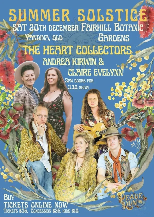 Celebrate the height of summer with a magical live music evening in the heart of Fairhill Botanic Gardens. Presented by Peace Run Records and Agency, this special Solstice concert features The Heart Collectors, joined by the phenomenal Andrea Kirwin and Claire Evelynn—a world-class lineup set against the beauty of nature.